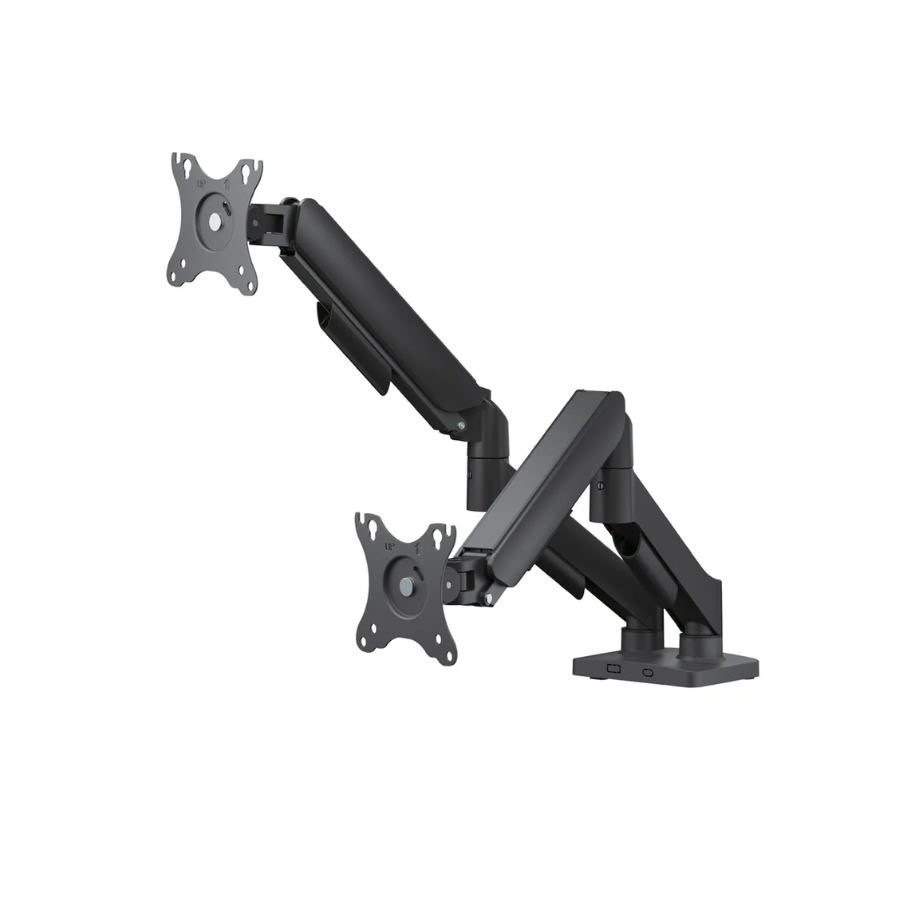 BRAZO DE MONITOR DOBLE CN RESORTE DE GAS DE 17” a 32” CON ABRAZADERA DE ESCRITORIO Y OJAL ARG-BR-1615 ARGOM