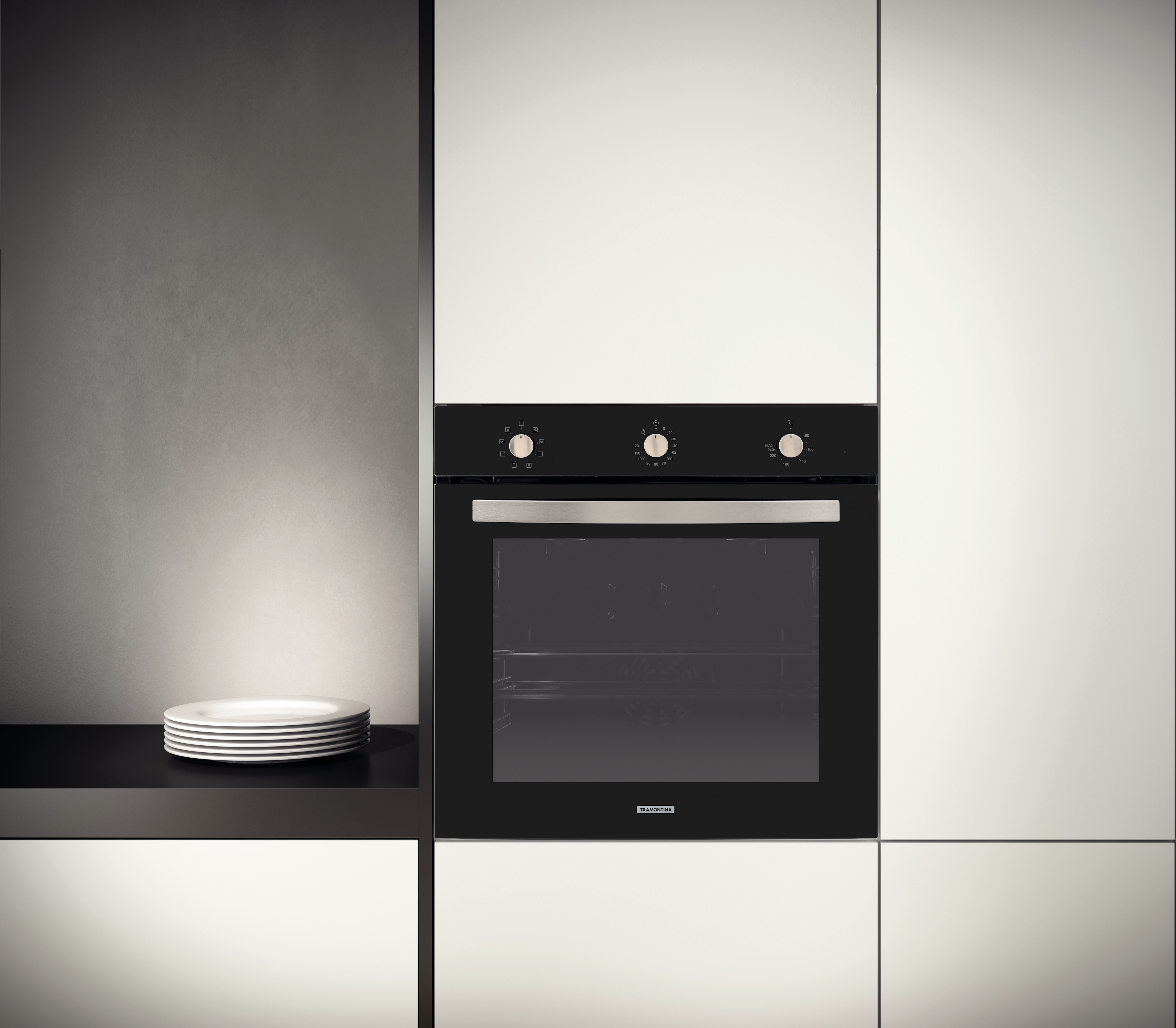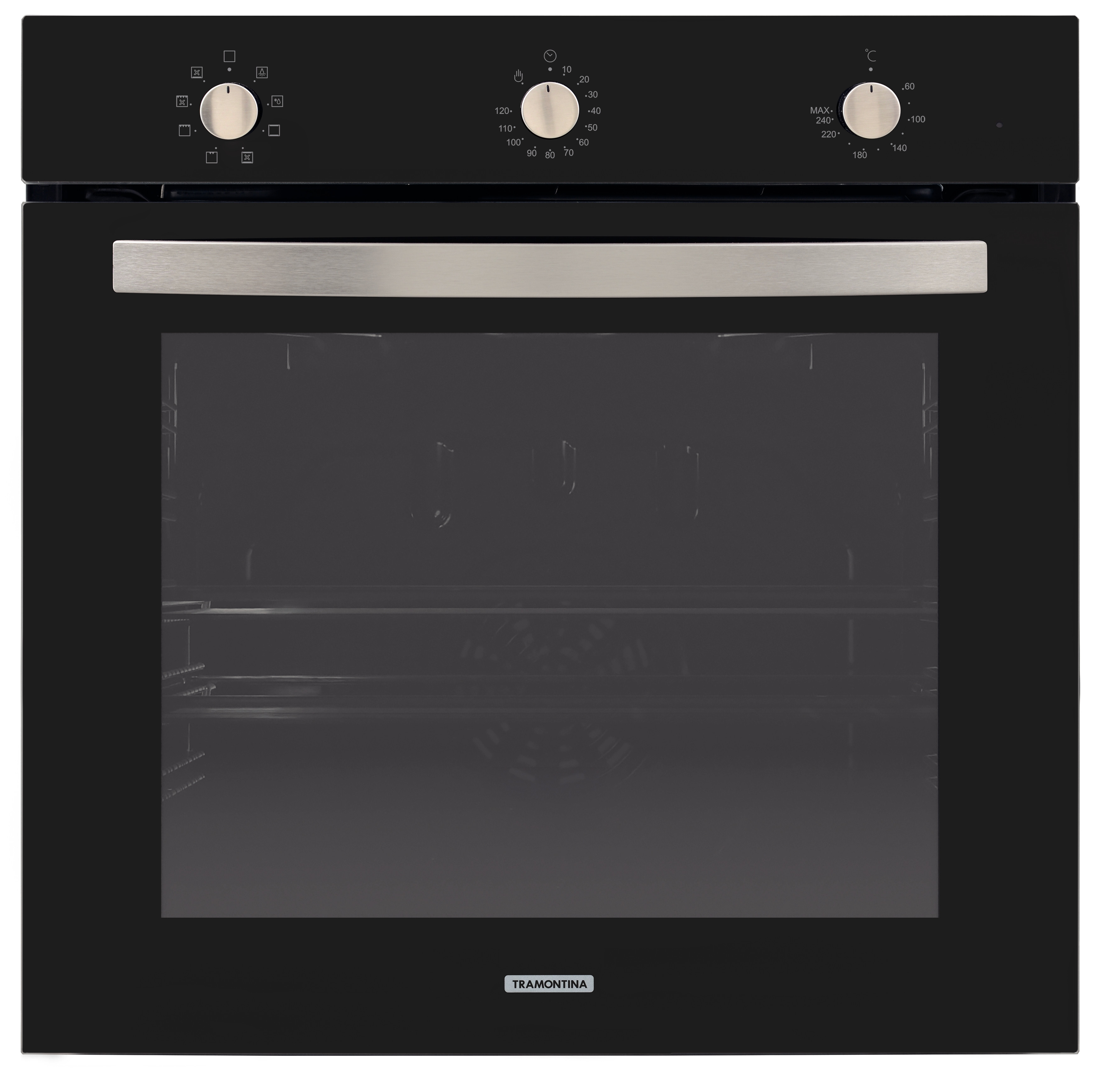 Horno eléctrico de embutir TRAMONTINA de vidrio templado negro, con 7 funciones, 73 litros de capacidad.