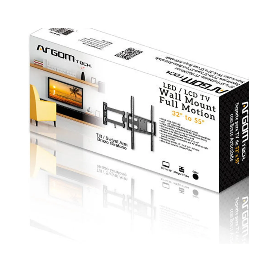 Soporte de pared para TV de 50” a 105” con brazo doble, resistente y de movimiento completo, 900 x 600 ARG-BR-1591 ARGOM