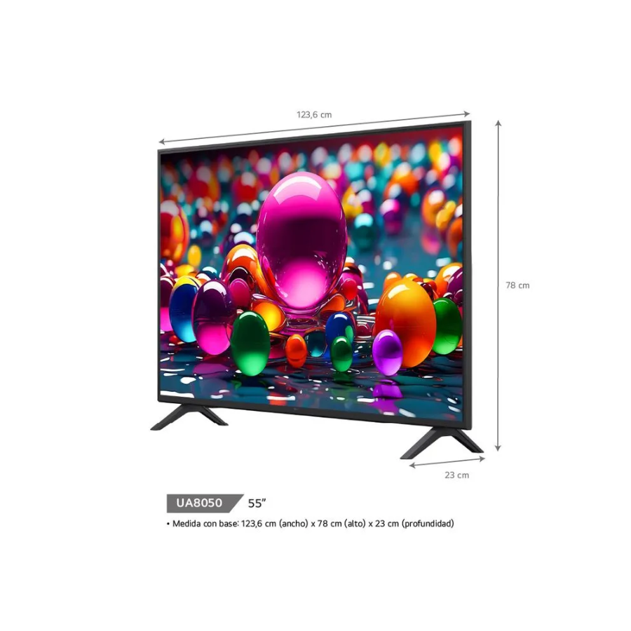 Disfruta una experiencia de entretenimiento más inmersiva con el televisor LG 55UA8050PSA. Su pantalla de 55 pulgadas con resolución 4K Ultra HD ofrece imágenes claras y realistas, mientras que el procesador con inteligencia artificial optimiza cada escena para brindar mayor detalle y mejor sonido. El sistema webOS facilita el acceso a aplicaciones y contenido en streaming.