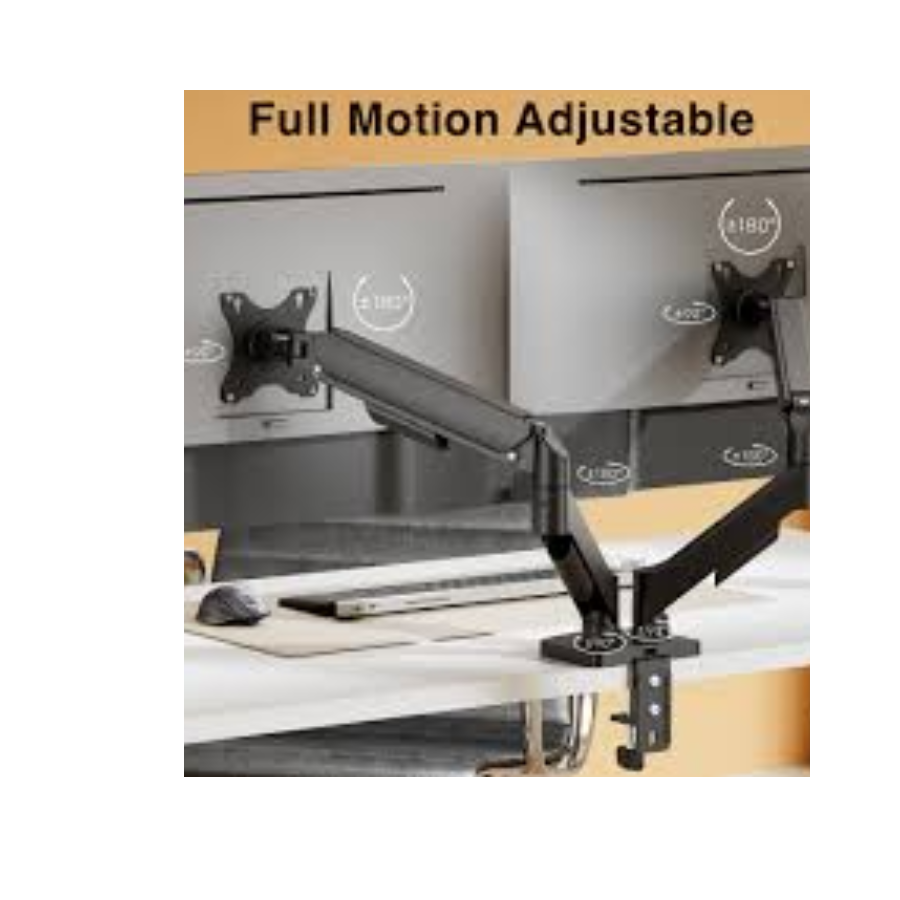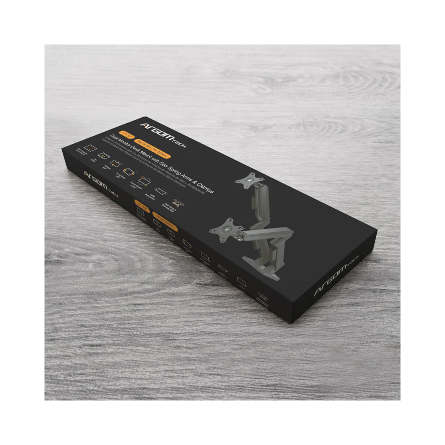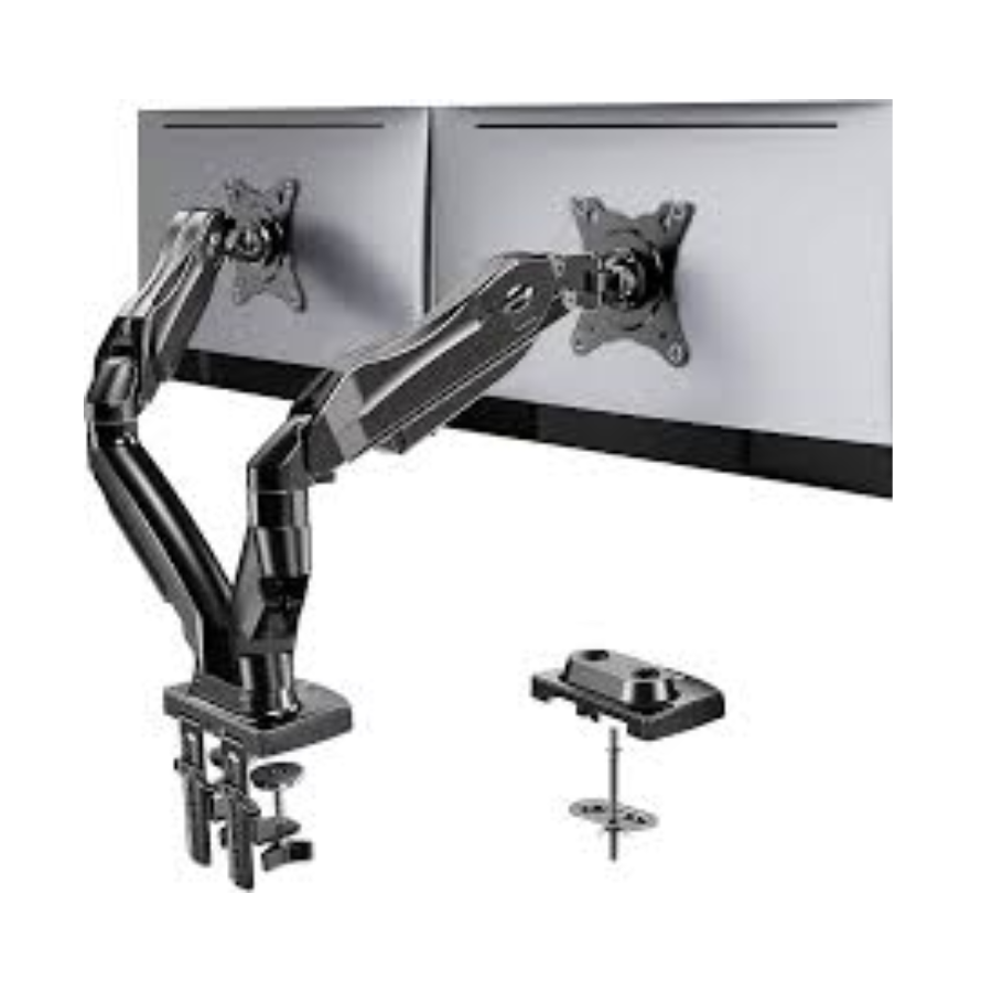 BRAZO DE MONITOR DOBLE CN RESORTE DE GAS DE 17” a 32” CON ABRAZADERA DE ESCRITORIO Y OJAL ARG-BR-1615 ARGOM
